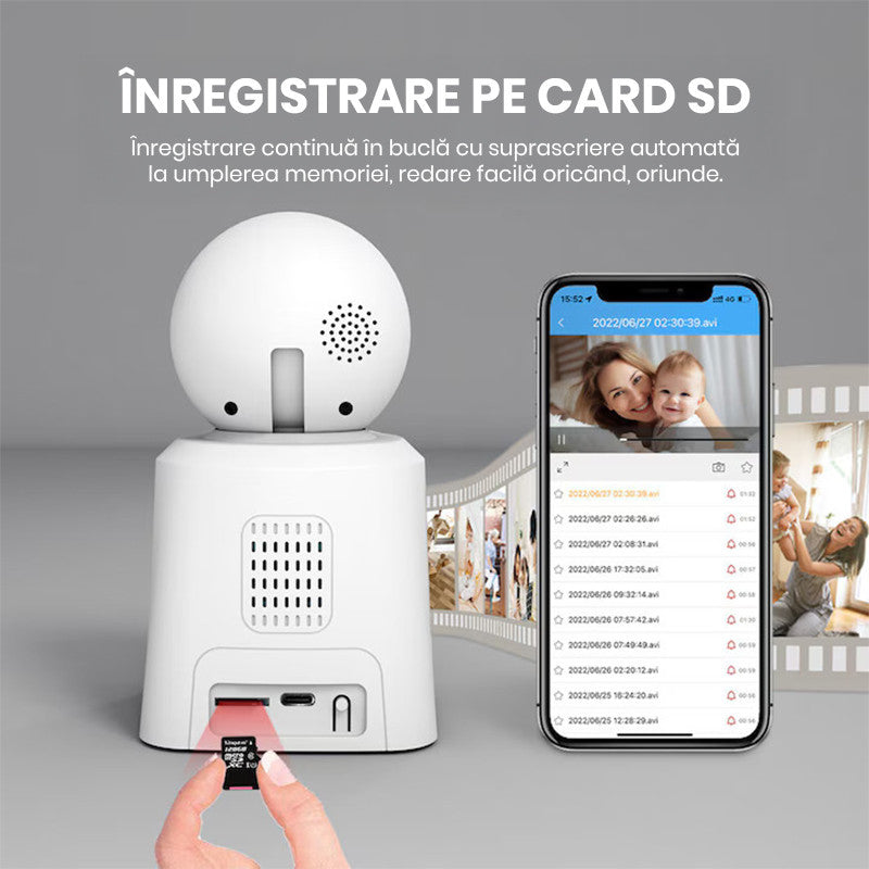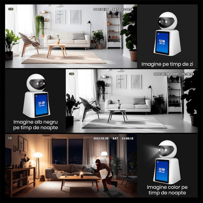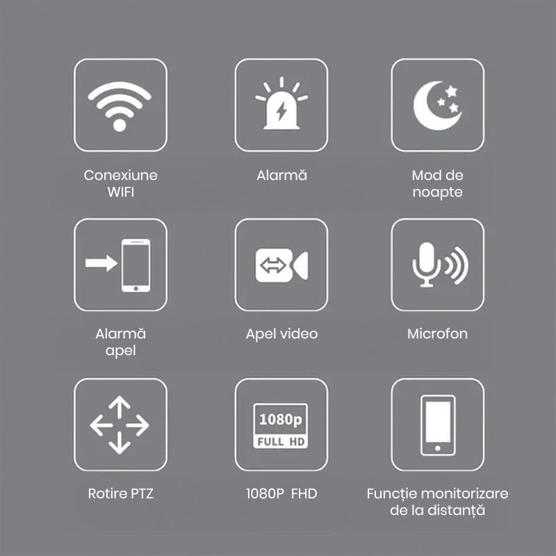 • Flexibilitate completa – 360° rotatie, detectie de miscare, apel video bidirectional si conectivitate WiFi, toate intr-un singur dispozitiv care iti face viata mai usoara!