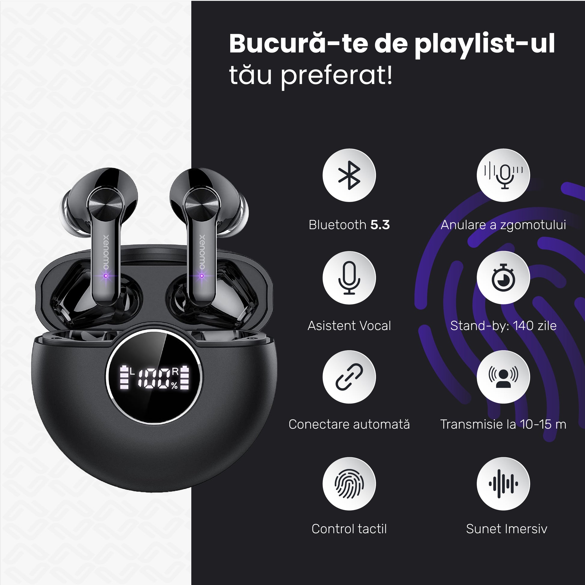 Casti Wireless Audio Xenomo® LUNA-X , Culoare Negru