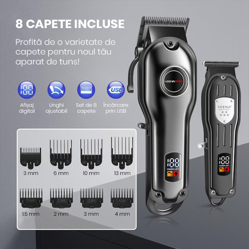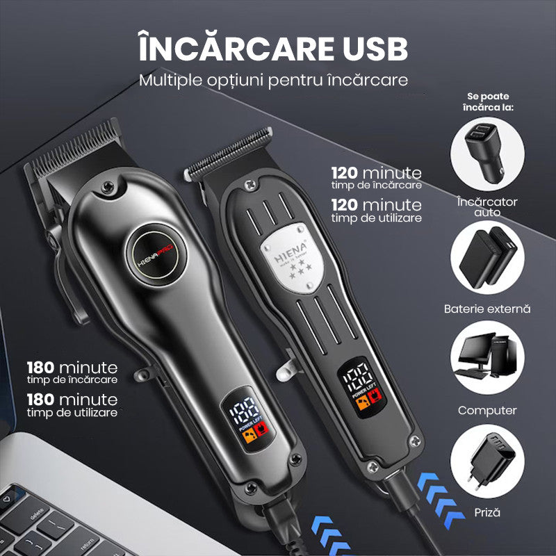 Kit Complet de Accesorii – Include ghidaje de taiere, perie de curatare, ulei, cablu USB si piepteni – tot ce ai nevoie pentru un tuns perfect.