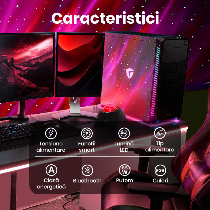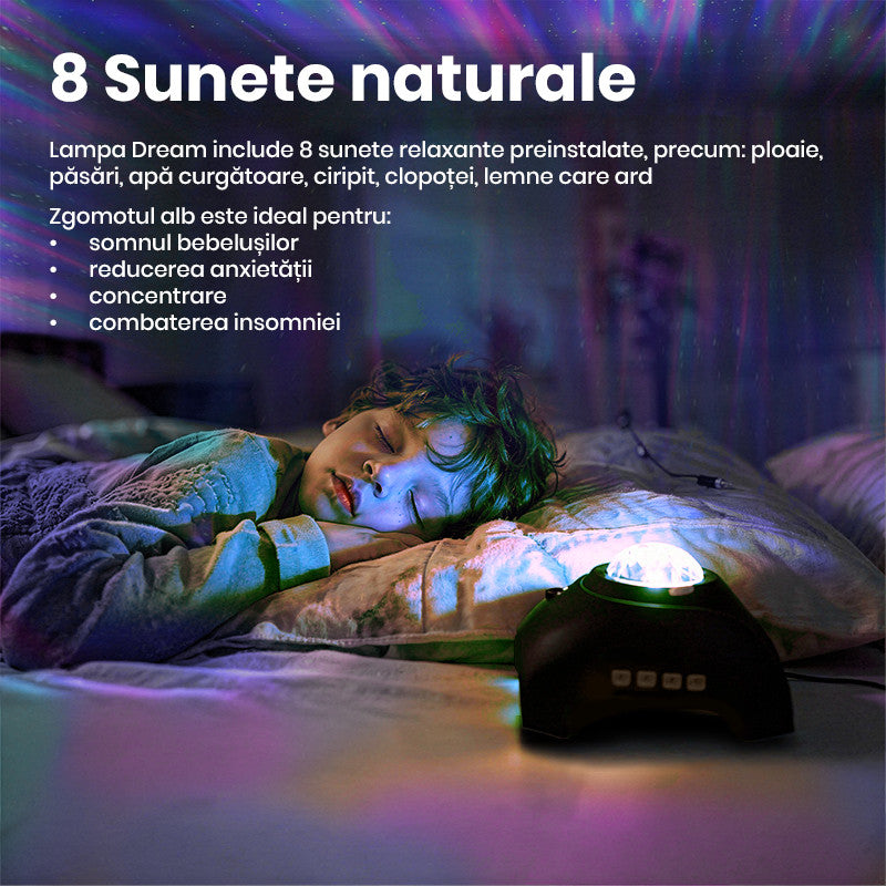 Transforma-ti camera intr-un spectacol cosmic cu Xenomo® DREAM, proiectorul inteligent ce aduce magia aurorei boreale si stralucirea cerului instelat direct in spatiul tau. Cu 33 de efecte de lumina si o combinatie perfecta intre tehnologie LED, sunete relaxante si conectivitate Bluetooth, acest dispozitiv creeaza o atmosfera de vis pentru relaxare, somn sau petreceri.